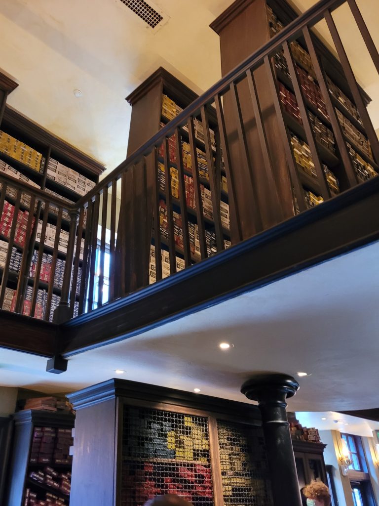 As you leave Knockturn Alley, you can turn right and head into the Leaky Cauldron to grab breakfast, lunch, or dinner. Whether you are in the mood for bangers and mash, shepherd’s pie, or Irish stew, Tom the Barman and his staff have you covered. As with all of the shopkeepers, Tom the Barman also keeps a wonderfully decorated bar, so you should take a minute to see up to the second floor and the great detail that is in the bar.