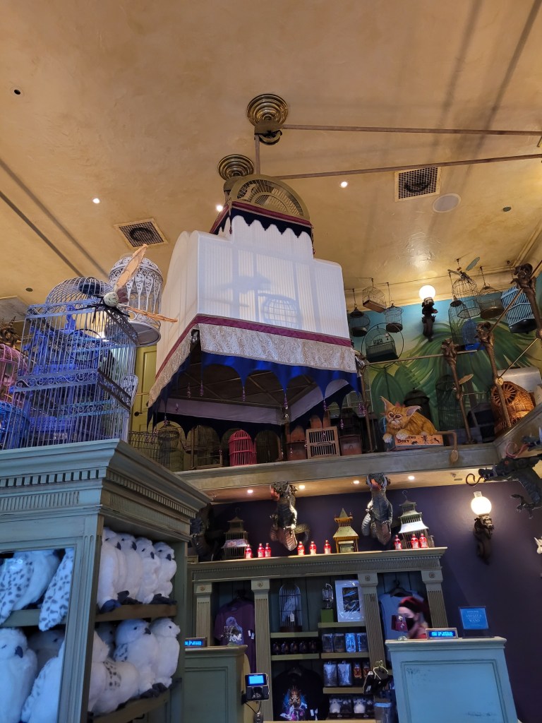Across the alley and to the left you can stop into Madam Malkin’s Robes for all Occasions to get your robes or other wizard attire. This shop has robes and sweaters that are customizable, dresses, and some trinkets for purchase. When you leave Madam Malkin’s go left on Diagon Alley to head to the Magical Menagerie to find your favorite owl, cat, or toad (or dragon, pixie, niffler, or phoenix) for your very own. When leaving the Menagerie, you can walk past Gringotts and continue to Wiseacre’s Wizard Equipment. Here you will find many options for clothing and trinket for your collection.