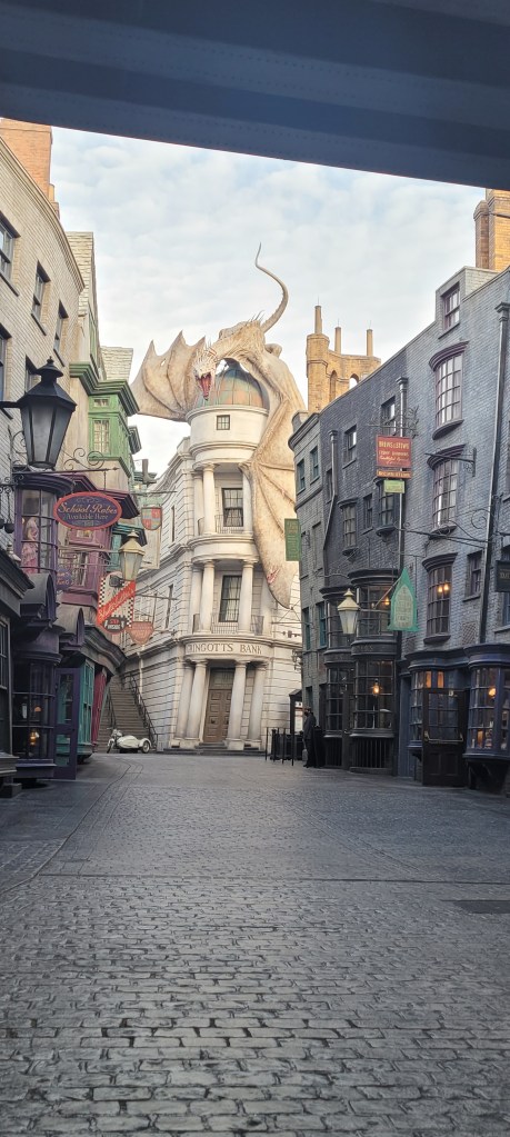 When I booked my first trip to Universal, it was because of the Harry Potter portion of the park. To be honest, I didn’t even think of going on rides or other parts of the park, I was just going so I could go to Hogwarts. It wasn’t until I was packing for the trip that I needed to think about the other parts of the park and what I was going to do. This post, and the next one, will be all about the part of the park that drew me to the park in the first place. In my “Tips for Park Success” post, I said it didn’t matter which park you did first, they are both great. However, if you are a Harry Potter fan and have never been to the parks, do Universal Studios first! This will bring you to Diagon Alley and you can walk through the journey of getting to Hogsmeade Station.