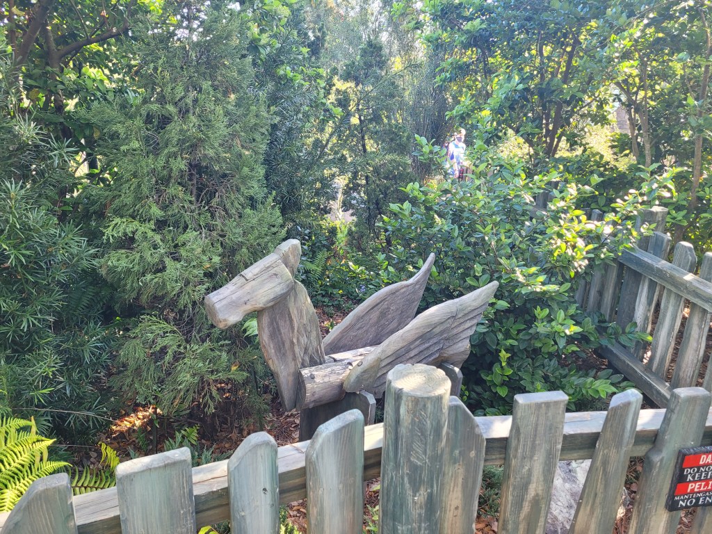 Directly across from Hogwarts, Hagrid has set up a small area for riding training hippogriffs, something to start with before meeting a real hippogriff and risk insulting it. The line is all outside as you are heading for a Care of Magical Creatures lesson. In the line you will find some of Hagrid’s trinkets, but mostly it’s just a nice walk through the Grounds of Hogwarts. One of Hagrid’s assistants will help you onto one of the training Hippogriffs and make sure that you are safe for the duration of the lesson.