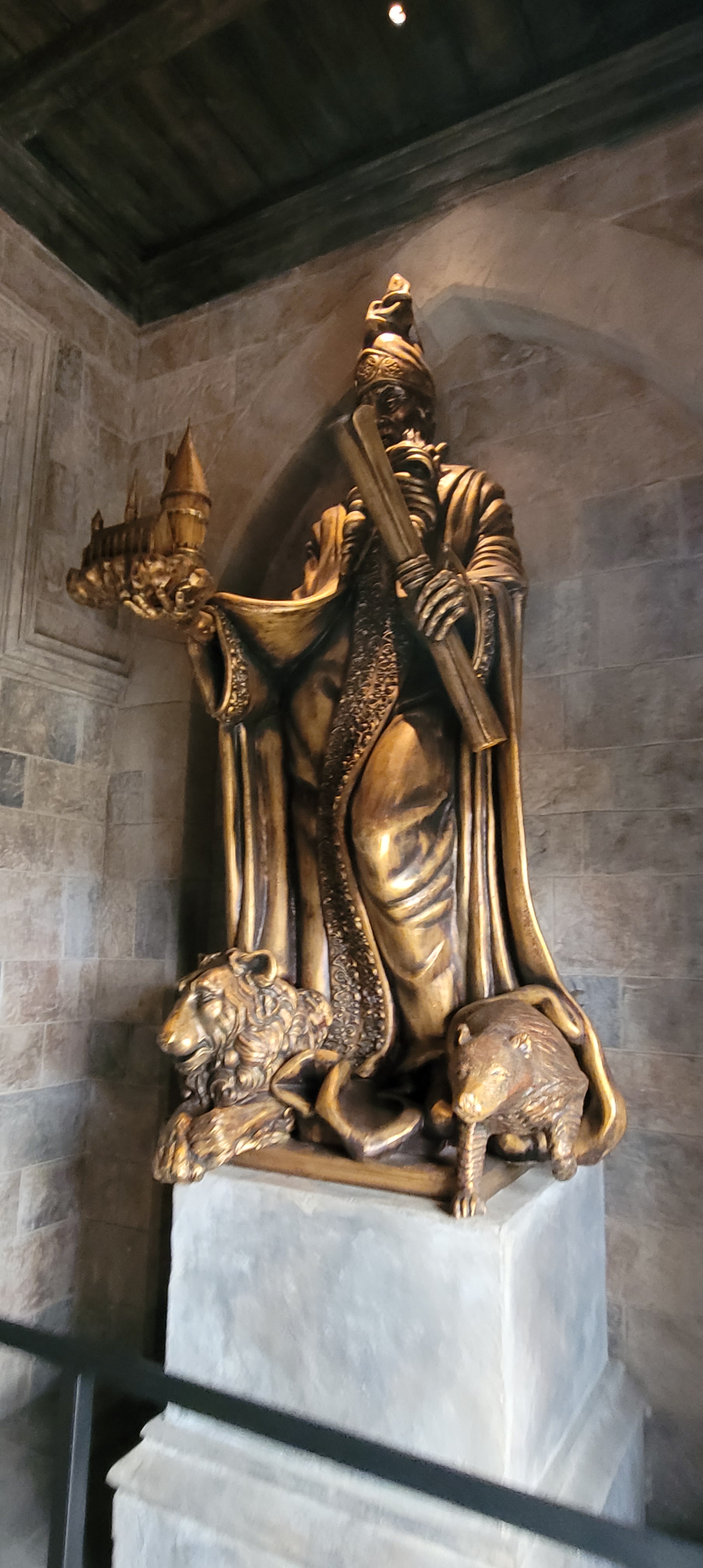 You will find portraits of the 4 Founders and they are having a conversation about Harry Potter as you walk by. After a few more corridors, you will find yourself looking at what looks to be the Room of Requirement, where Harry, Ron, and Hermione will appear from under the invisibility cloak and discuss trying to the clock tower. With just a couple more turns, prepare yourself for Floo Powder, flying on a broom, and all the adventures of Hogwarts.